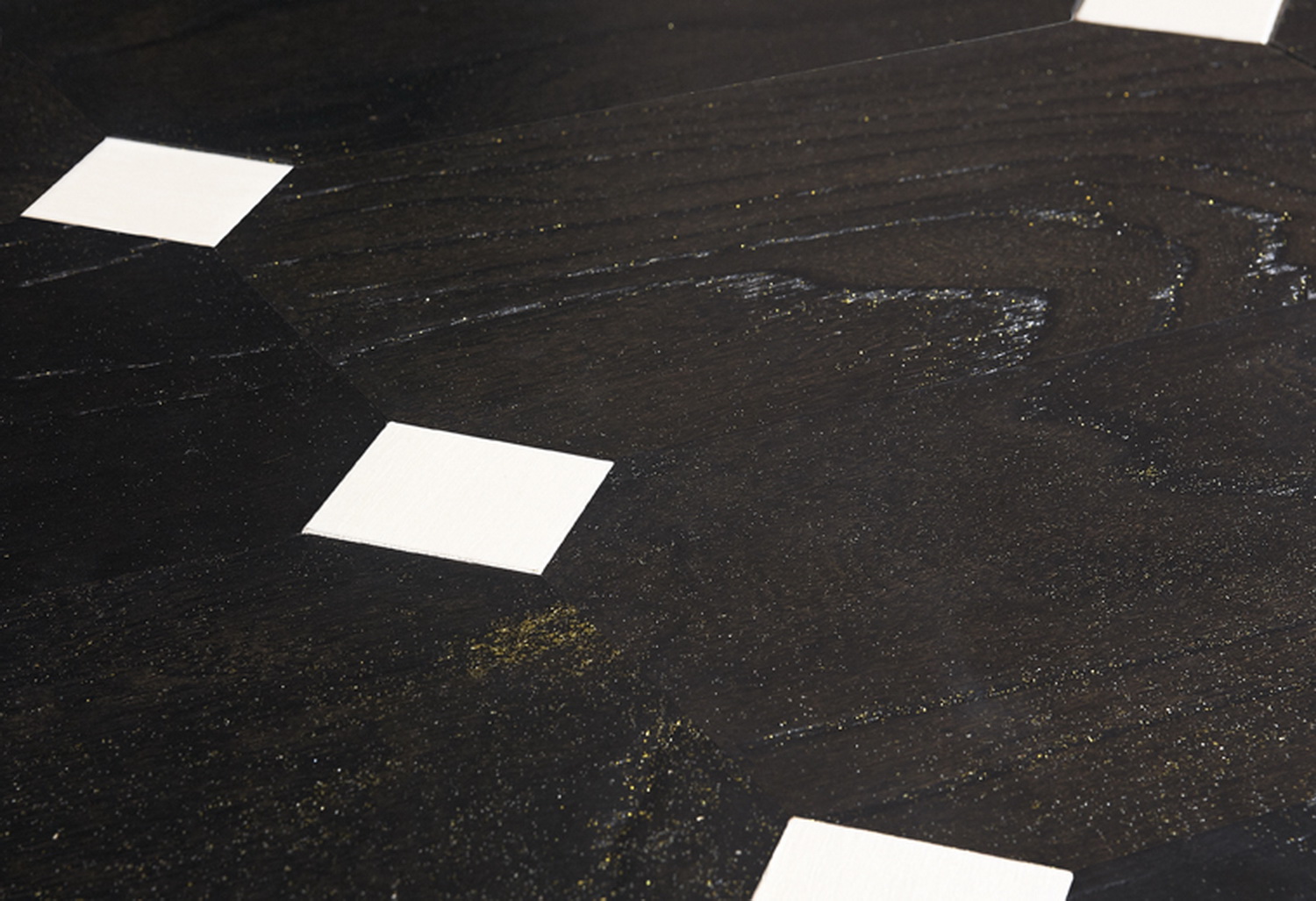 “纤云弄巧,飞星传恨,银汉迢迢暗度。”此款地板巧妙借鉴秦观《鹊桥仙•纤云弄巧》中阐述银河的状况场景,纯手工工艺,再配以璀璨金粉修饰,仿佛流淌在天际间繁星点点的银河。点缀家中奢华,从此款拼花地板开始。