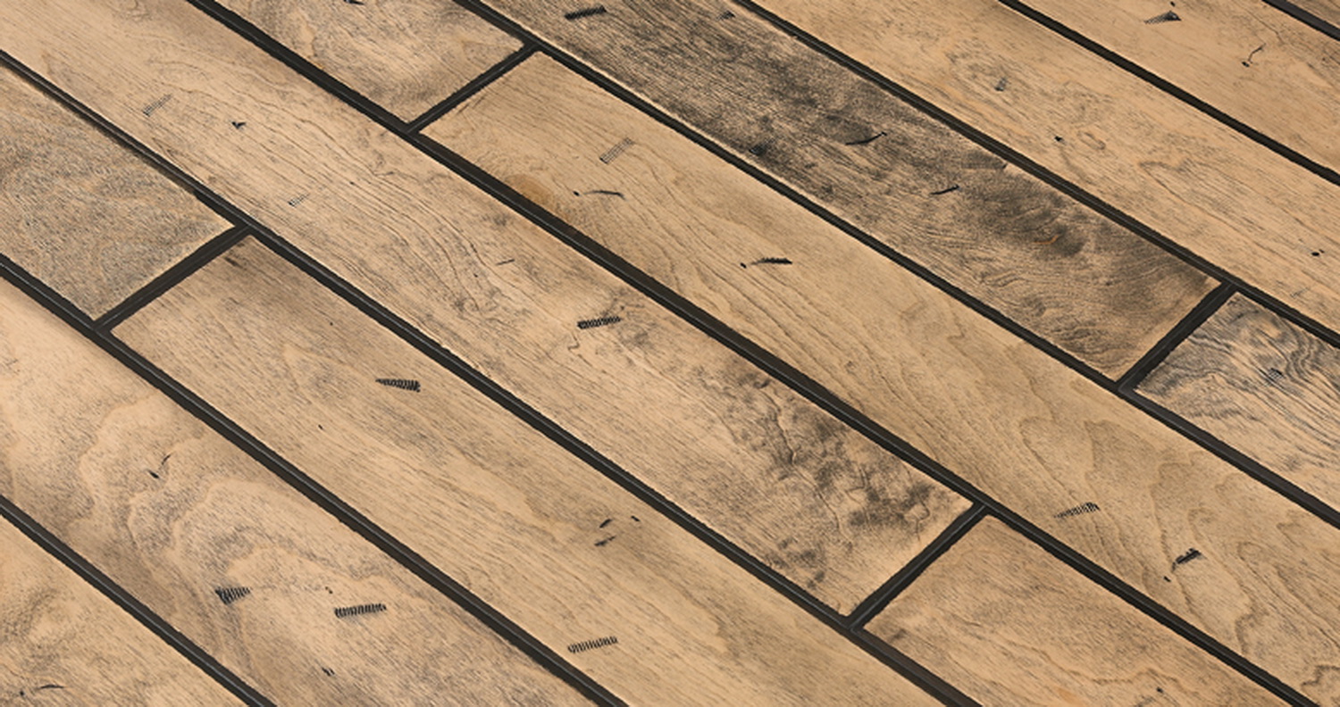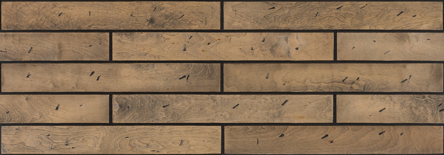 此款地板上存在两种痕迹,一是木材随时间而变迁的自然痕迹,二是人文痕迹,灵感源自万里长城上斑驳的砖砌城墙,大面积铺装效果犹如见证着沧海桑田的雄伟城垣,令人激发出思古悠情的历史情感。